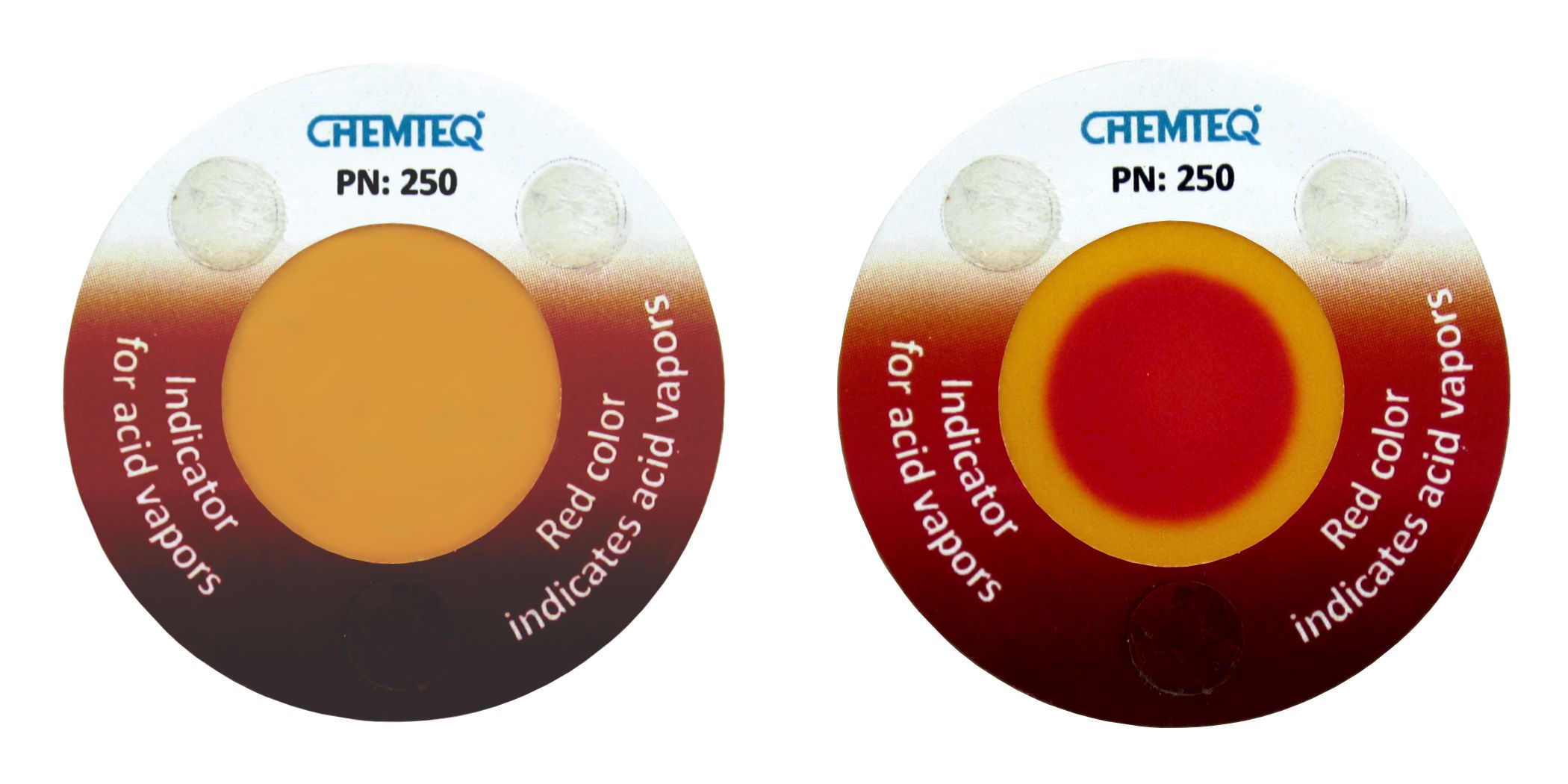 Acids Breakthrough-Indicator Sticker B (BTIS B) – PN 250. Is a leak detector for use in chemicals transport vehicles and chemical storage cabinets. Suitable locations are the inside of glass window of chemical transport vehicle, or the inside glass window of chemical storage cabinet where representative samples can be obtained. Reliable and cost effective. Operates under extreme conditions and has extended service life.