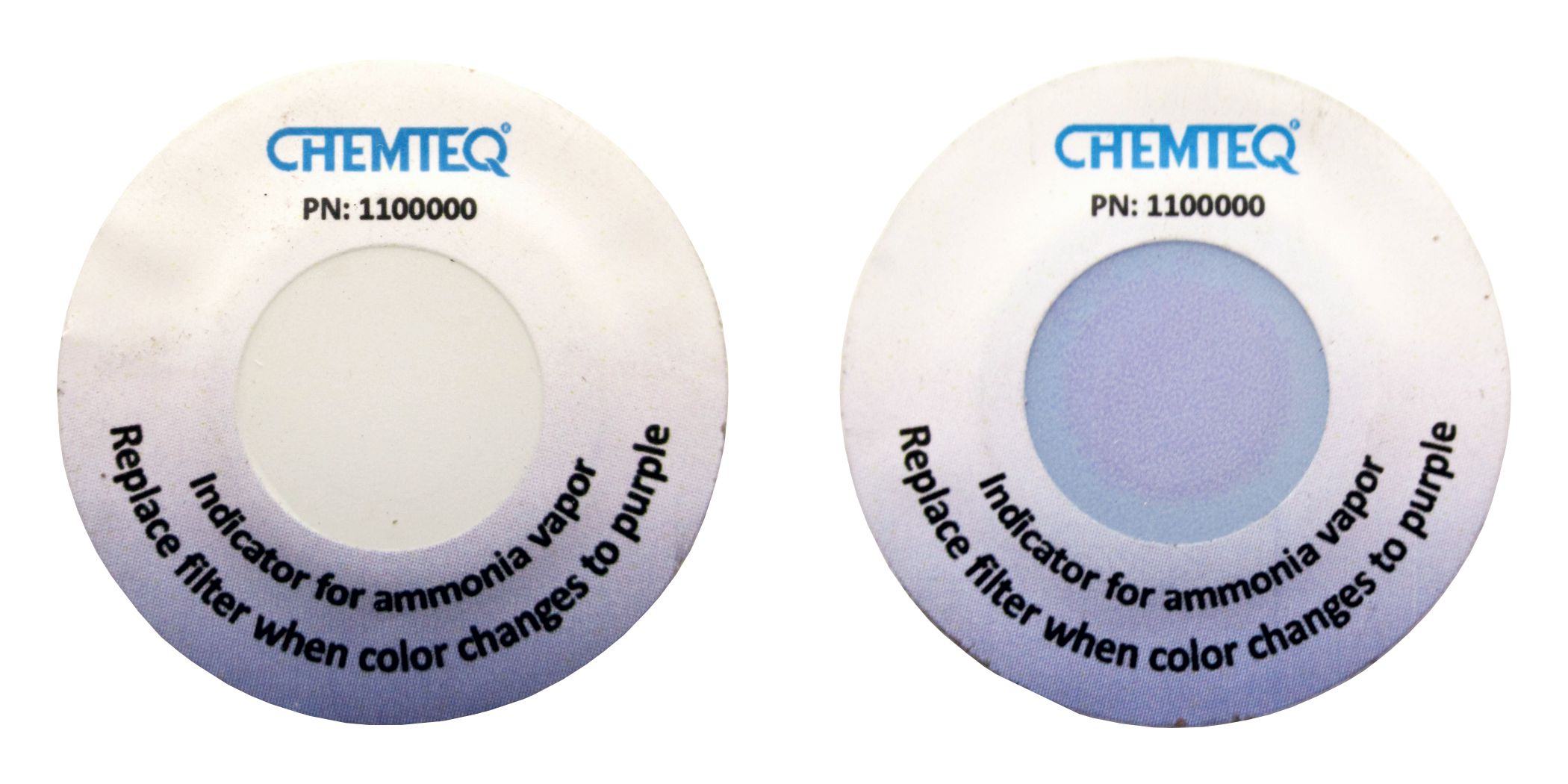Ammonia Filter Breakthrough-Indicator Sticker ? BTIS – PN 1100000. Filter change indicator for ductless hood and fume extractors filters. Unique design of the indicator prevents any color change due to exposure to contaminants in the surrounding environment and changes color only when filter is saturated. Protects from espouser to toxic chemical and allow you to get the most use of your filter.