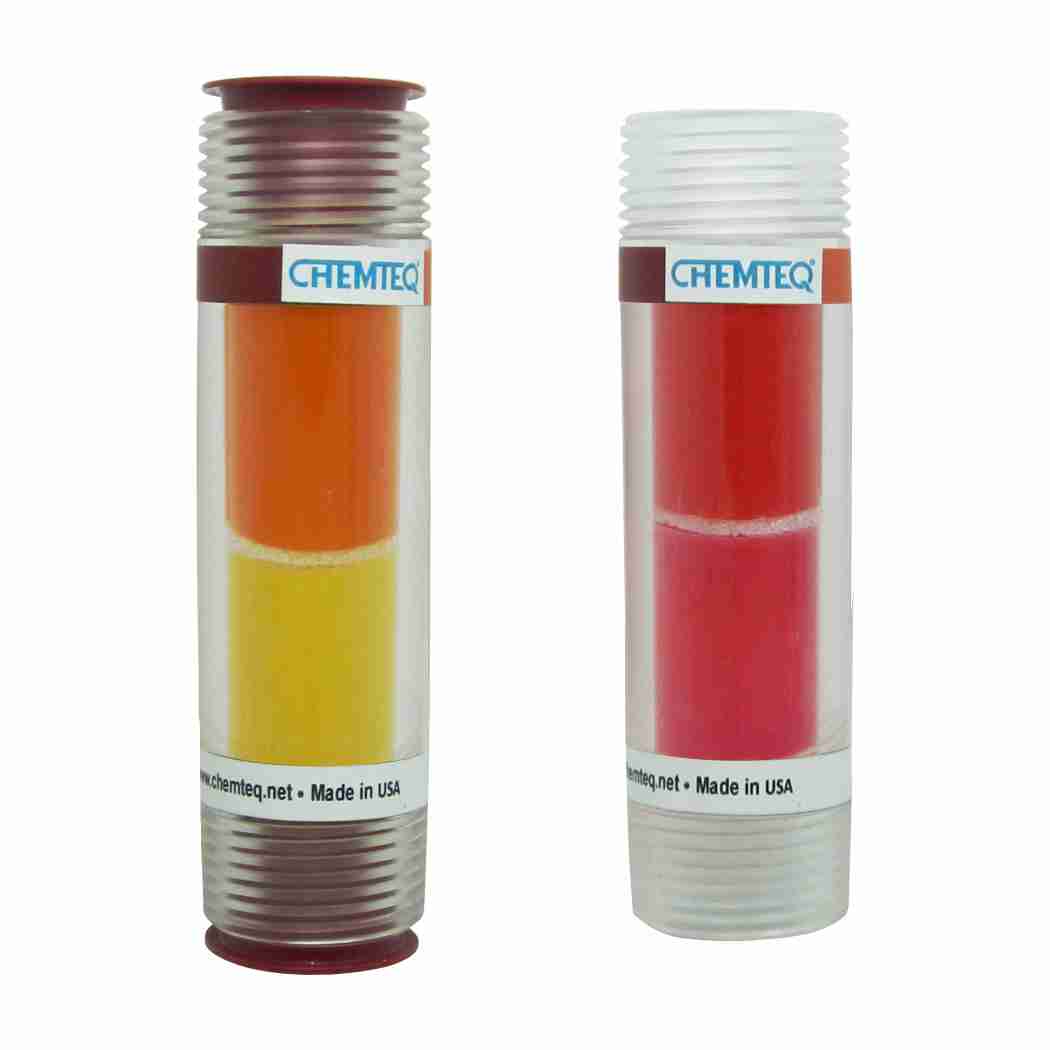 Halogens Breakthrough indicator inline is reliable and cost effect means for protection from exposure to halogens gases and vapors. Halogens include bromine, chlorine and iodine. The indicator is easily connected in-line with ?? male, male NPT inlet and outlet. It is sensitive to acid gases and vapors. You can observe the bright vibrant color change from all directions.