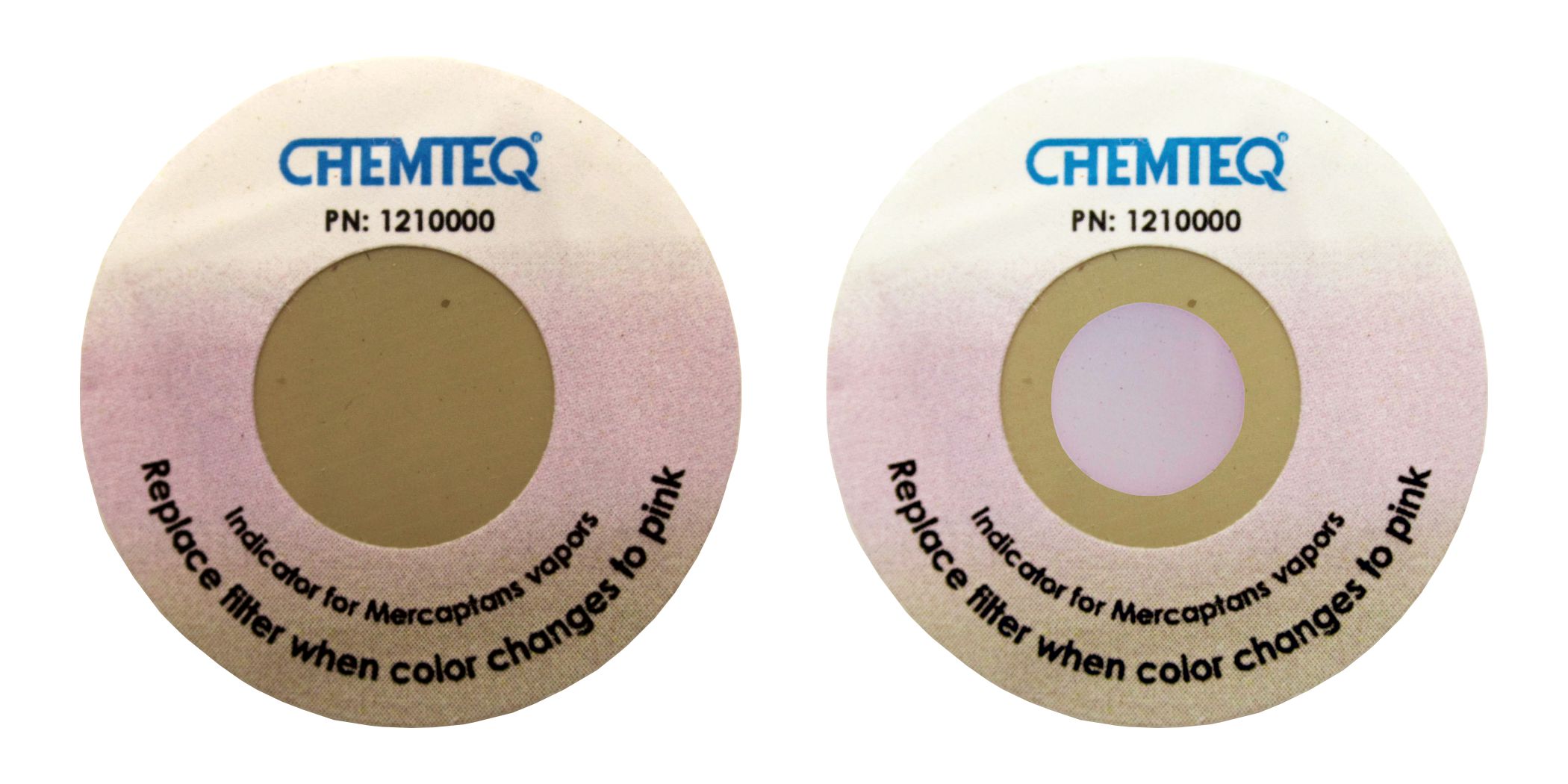 Mercaptans Filter Breakthrough-Indicator Sticker -BTIS – PN 1210000. Filter change indicator for ductless hood and fume extractors filters. Unique design of the indicator prevents any color change due to exposure to contaminants in the surrounding environment and changes color only when filter is saturated. Protects from espouser to toxic chemical and allow you to get the most use of your filter.
